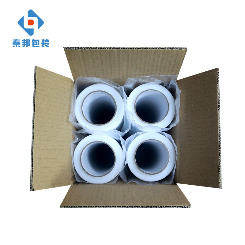 適用于托盤運輸包裝或貨物棧板打包,均能防潮,防塵及減少人工、提高效率,達到保護產品與降低成本的目的。尤其用于貨物棧板打包運輸作業,充分發揮膠膜的強韌性及自粘性,配合纏繞時層層張力的緊束作用,達到棧板打包理想效果。